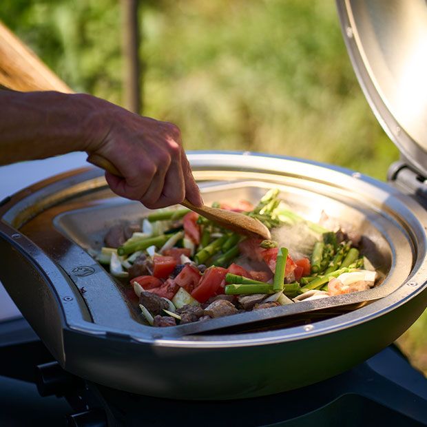 Langtidsstegt lammebov på rotisseri med grillede grøntsager