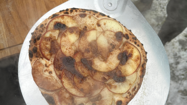 Prøv vores super lækre æblepizza, som snack eller som dessert.