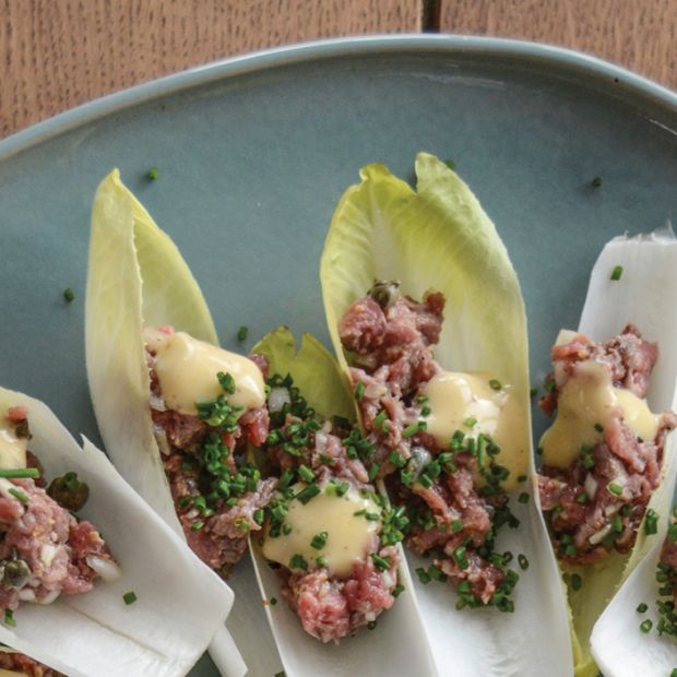 Letgrillet kalvetatar i julesalat med sennepsmayo