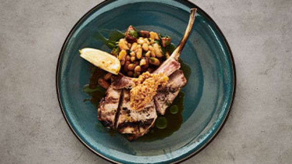 Go' Grill - Grillet svinekotelet med chorizo, bønnecasoulet og romesco