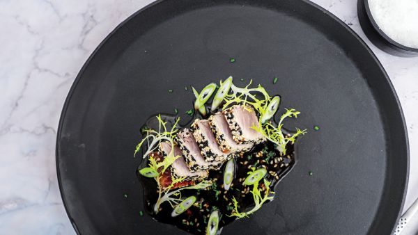 Smør mør tun vendt i sesam, lynstegt og overhældt med lækker asiatisk marinade, – det bliver ikke meget bedre