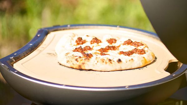 Når du er klar til at komme pizzaen på grillen, ændres varmen til 400 grader - overvarme 3 / undervarme 7. (stenen vendes absolut ikke!!!)