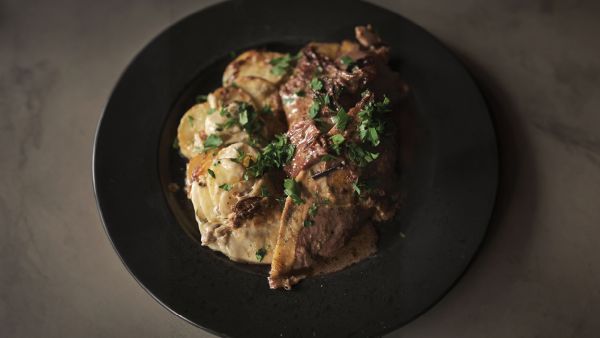 Bag kartoflerne i 45-50 minutter, til kartoflerne er møre og gyldne på toppen.