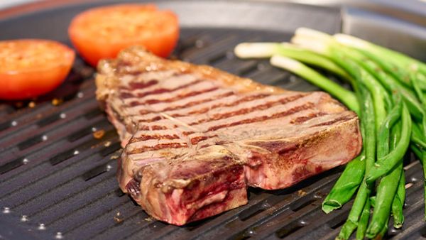 T-bone steges ca. 3 minutter på hver side.