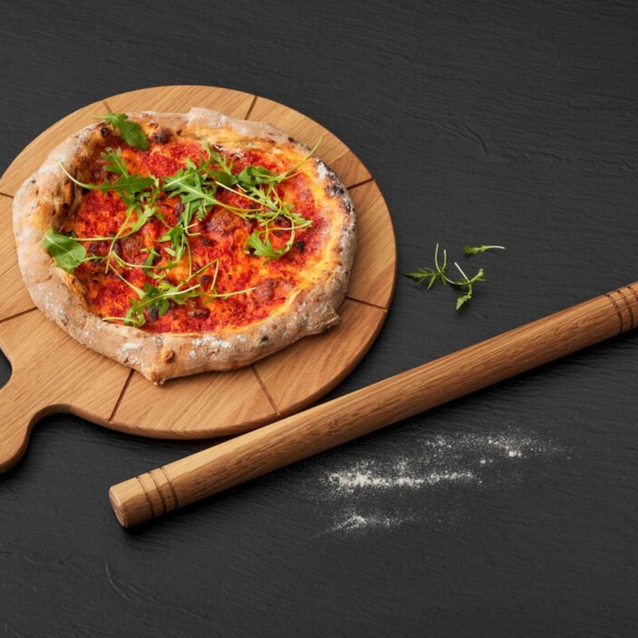 Den flotte, enkle rullepind i egetræ indbyder til, at du giver dig i kast med både pizzadejen, den hjemmelavede pasta og alle andre slags deje. Efter udrulning er det enkelt at rulle dejen let om rullepinden og flytte den fra bordet over på bagepapir. På samme måde er rullepinden velegnet til at flytte marcipan og fondant over på en kage. Vaskes med varmt vand og mild sæbe. Tåler ikke opvaskemaskine. Kan med fordel efterbehandles med madolie et par gange om året. Varen er produceret i FSC®-certificeret egetræ (FSC-C166612).