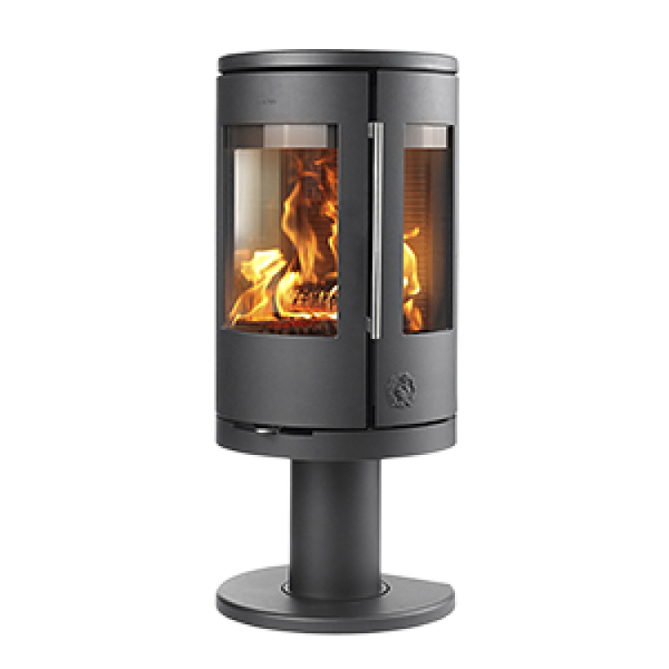 Morsø brændeovn 7448 er sat på en piedestal. Den slanke sokkel hæver brændeovnen op i højden. Derfor kan synet af flammerne nydes fuldt ud. Som de øvrige modeller i 7400-serien er Morsø brændeovn 7448 let at betjene, og brændkammeret af støbejern sikrer en mindre miljøbelastende forbrænding.