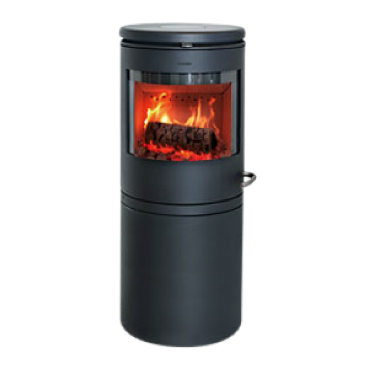 Brændeovnene er lavet af det robuste støbejern, mens foden er drejet i stål. Designet er anderledes og formerne er bløde og runde. Ovnens store glasrude giver en stor oplevelse af den levende ild, der ikke bare opvarmer 120 m2, men taler til alle ens sanser.
