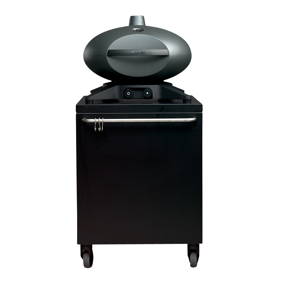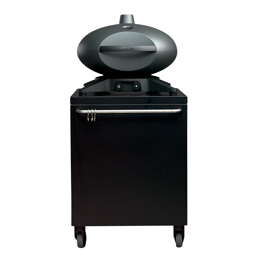 Ein Untergesell mit vier Beinen gibt dem Morsø Forno Gas ein stabiles Fundament. In diesem sind auch gleichzeitig die Temperaturregler für die beiden Brenner integriert.