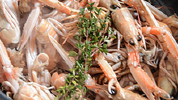 Hummer schälen. Zuerst den Kopf entfernen, dann die Schale vom Oberkörper entfernen. Anschließend den Schwanz mit anhängendem Gedärm abbrechen. Gedärm entsorgen, Schale und Kopf beiseite stellen. Fenchel, Zwiebeln und Lauch würfeln, Knoblauch grob hacken.