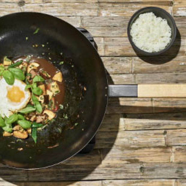 Gegrillter oder gedämpfter Fisch mit Phat Kaphrao