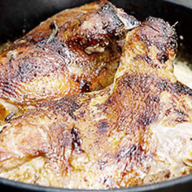 Mit Cidre, Salbei und Sahne Braisierter Fasan