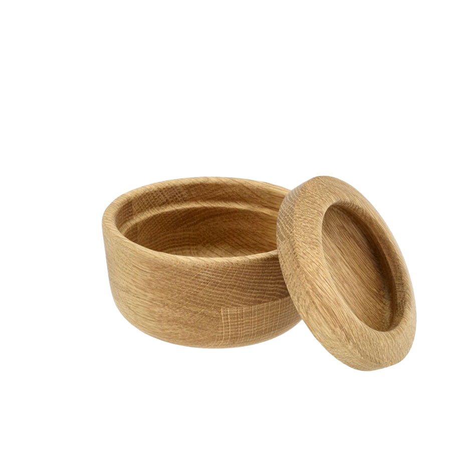 Decorative salt cellar with lid of oak. Oak is a beautiful and highly durable type of wood that will last for years and years – only becoming more beautiful over time. For use in the kitchen as well as on the dining table.