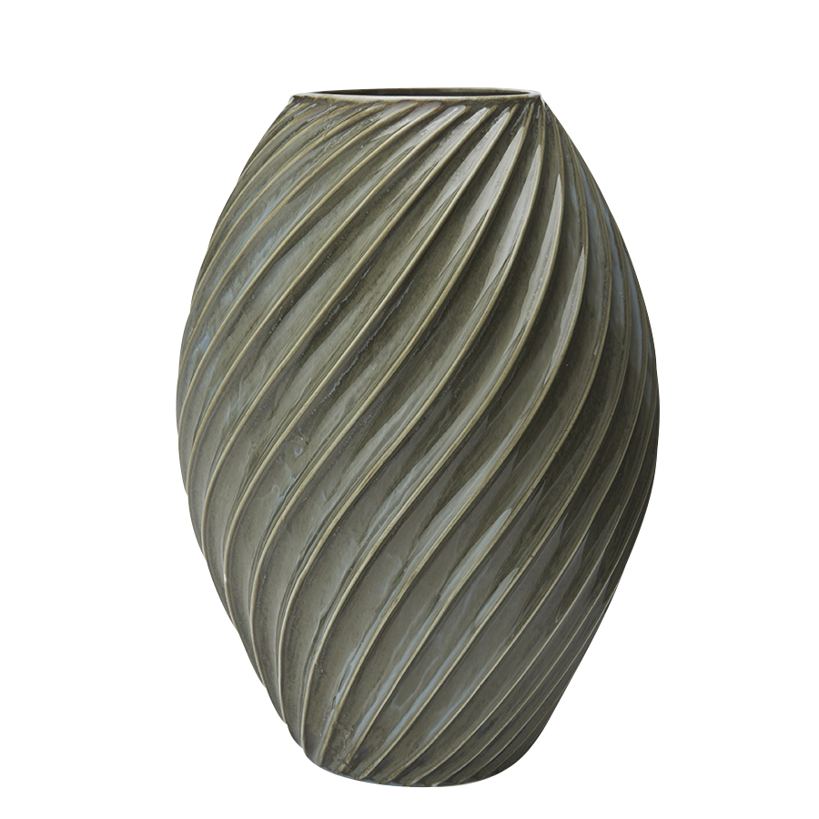 The RIVER vase is designed by Peter Svarrer and made from porcelain with a lovely greyish green glazing that emphasises the shape of the vase.  The beautiful diagonal spiral pattern elegantly coils around the slender vase as small ripples on the ocean and gives it an excitingly tight and graphical expression. The vases are available in three classic sizes suitable for roses, cut flowers from your garden, and spring branches, respectively.