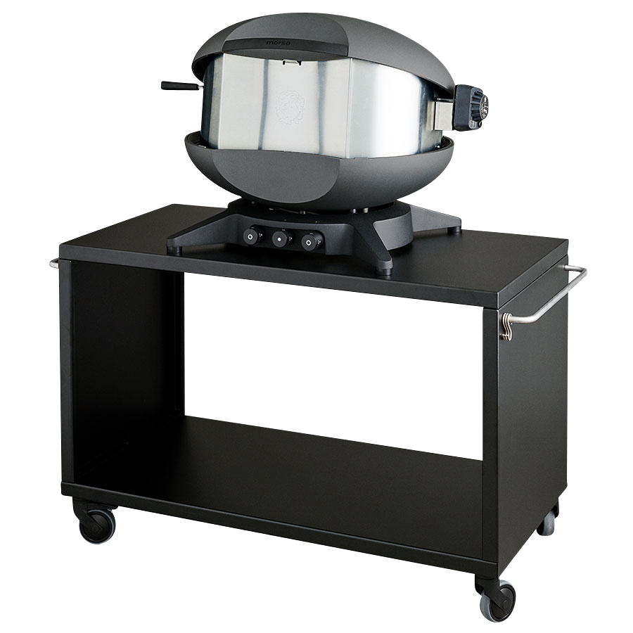 In general, a rotisserie for a grill is solely intended as a functional expansion. Not so for Morsø, however... Function-wise, the rotisseries for Morsø’s popular Morsø Forno Gas Grande og -Medio are designed to supplement the grill’s original characteristic and simple design. The maintenance of the overall design profile whilst at the same time securing optimal quality and functionality was an indispensable requirement for Morsø as for the designer, Klaus Rath. The beautifully curved screen in stainless steel elegantly wedges itself under the lid of the grill, thus establishing ample room for the rotation of even considerable quantities, just as there is room for a meat-juice collector between the rotator and the grilling core. An even rotation thus facilitates the easy and simple achievement of a beautifully, deliciously and uniformly grilled product. When using the rotisserie, the heat levels of the grill are reduced slightly. The rotisserie is easily cleaned, and all steel parts are dishwasher proof.