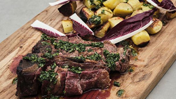 Cut the steaks into slices of 2 cm (0.8 inch) from the bone. Serve your steaks with rosemary potatoes and salsa verde. Buon appetito.