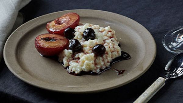 Pour the rum over the plums and bake them in a hot Forno until they start to soften.