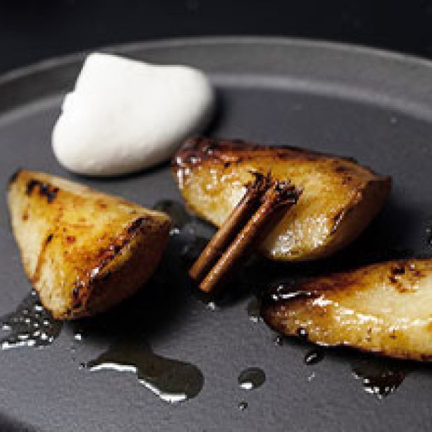 Grilled pears with honey, cinnamon, and mascarpone créme