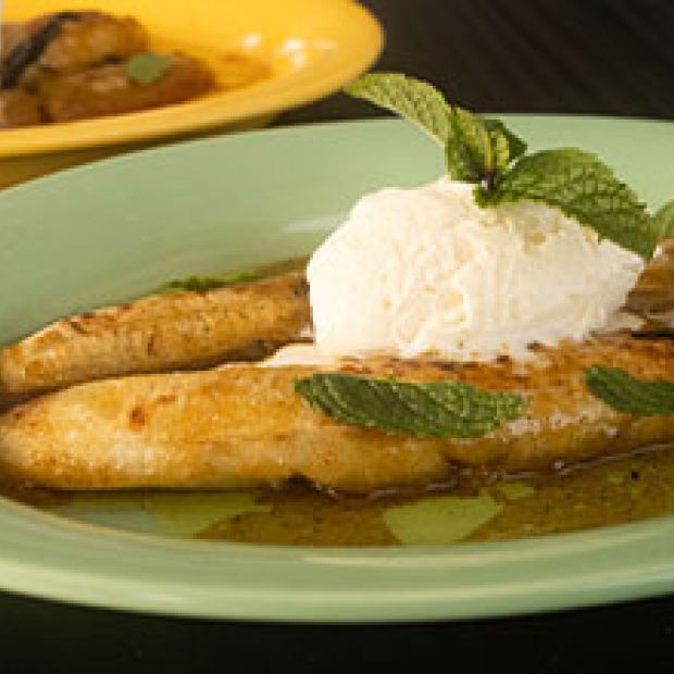 Baked bananas with coconut ice cream
