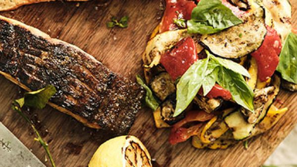 Grilled salmon with grilled vegetables