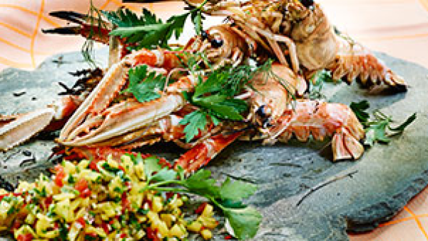Place the langoustines on the grill insert and place above the embers in the forno for 5 minutes or until the meat feels slightly firm.