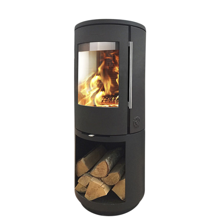 Morsø 7393 a une haute base supplémentaire avec le dépôt de carburant, qui donne une apparence exclusive au fourneau. Le dépôt de carburant donne une vue ouverte du petit rondin journal rustique  et crée  une atmosphère dans la pièce.