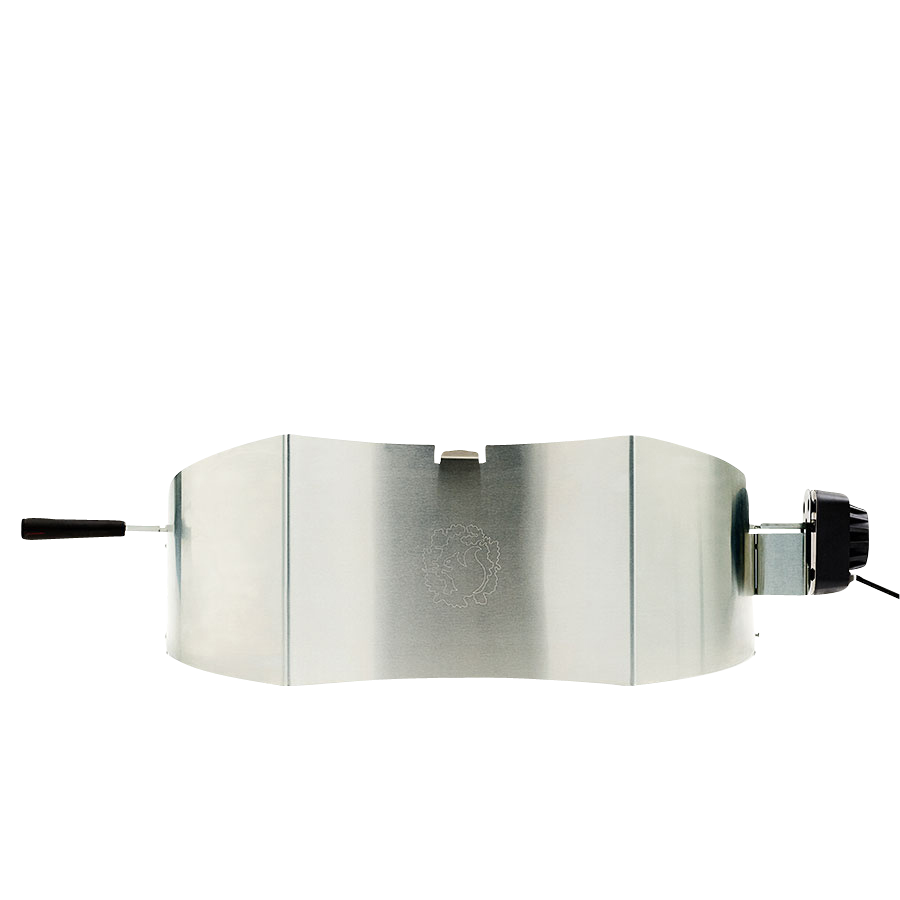 L’esthétique boîtier incurvé en acier inoxydable se glisse avec élégance sous le couvercle du barbecue, laissant ainsi une place suffisante pour retourner des pièces importantes, et permettant de placer un collecteur de jus entre la partie rotative et la paroi du barbecue. Une rotation régulière vous permet de préparer facilement et en toute simplicité votre grillade pour qu’elle soit parfaitement cuite, appétissante et savoureuse. Lors de l'utilisation du tournebroche, les niveaux de chaleur du gril sont légèrement réduits. La rôtissoire est facile à nettoyer et ses pièces en acier sont lavables en lave-vaisselle.