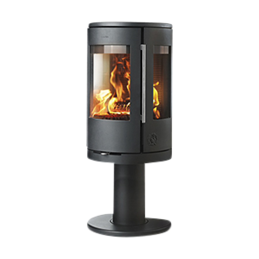 Morsø 7449 raises itself into the room on a beautiful extra high pedestal. The large glass surfaces make it possible to enjoy the flames through 180 degrees.