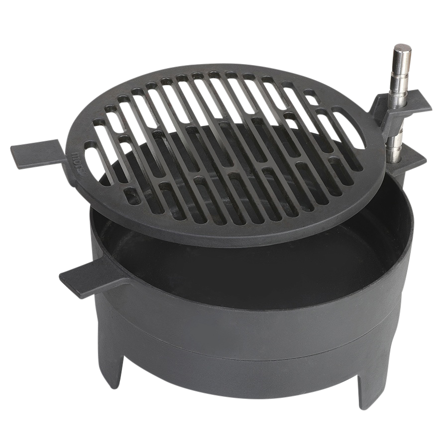 The introduction of this new model enables everyone to gather round the table to share the joyous atmosphere of barbecuing – from the word go. This barbecue works equally well on charcoal, briquettes or ordinary wood. Being a beautiful fire bowl, it will also provide a charming atmosphere, during and after the meal.