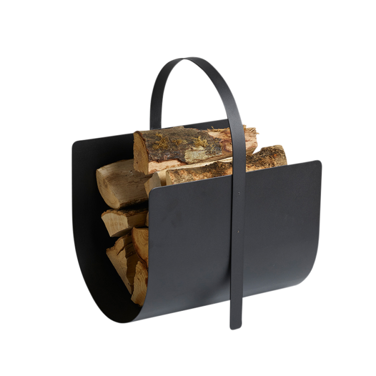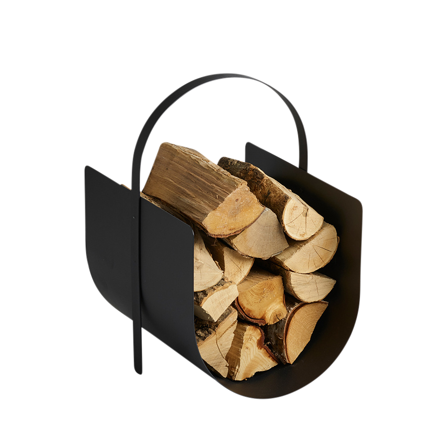 Not only is this firewood basket a charming way of storing your firewood as it can, at the same time, be used when fetching the logs. The handle performs the function of a support for the curved bottom, which constitutes the basket as such, and thereby ensures its stability. The visible ends of the logs contribute to make the basket a decorative element in the sitting room.