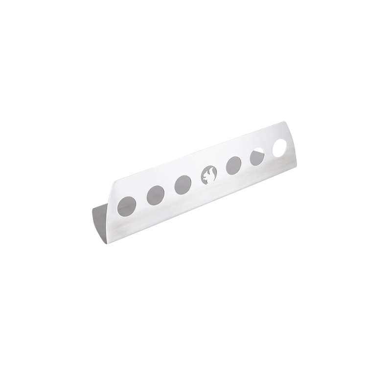 The holes perform the dual function of insuring perfect airflow for the firewood as well as the provision of suspension opportunities when the divider is not in use.