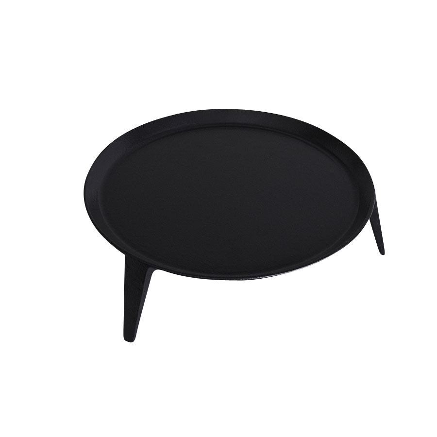 The slanting edge encircling the frying plate contributes to ensure that both fish, meat and vegetables will remain on the plate, centred above the heat. In addition, the plate also functions as a collector of liquids and meat-juice.