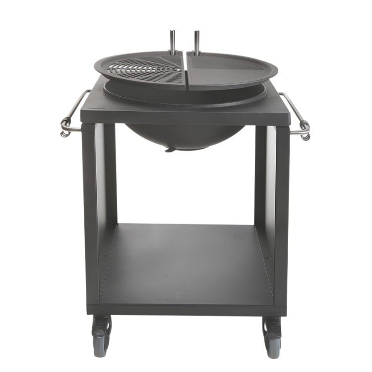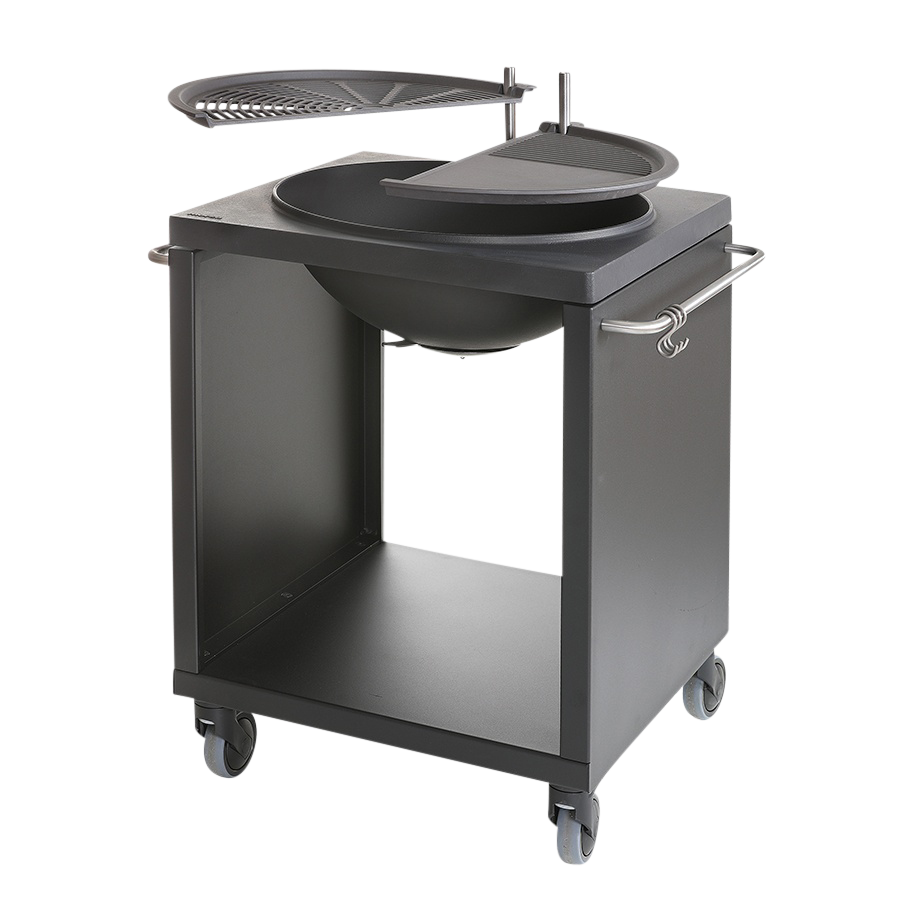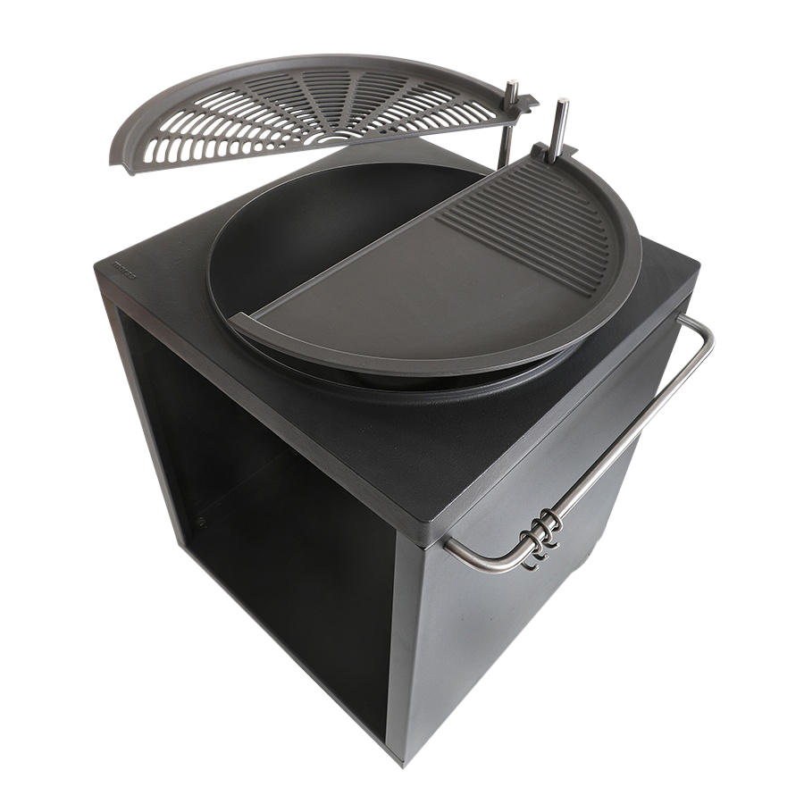 After cooking, the plate and grid are swivelled aside; and now, the ‘bowl’ will function as a decorative open-fire pit – thus securing a cosy and cheerful atmosphere. As long as you have firewood, there will be cheerful company.
