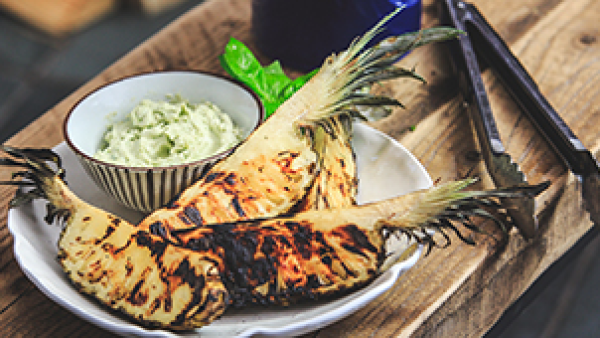 See how David Jones cooks toased pineapple skewers with basil cream in Morsø Kamino - HERE